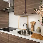As opções de autoatendimento neste apartamento incluem cozinha totalmente equipada equipada com forno e máquina de lavar loiça.